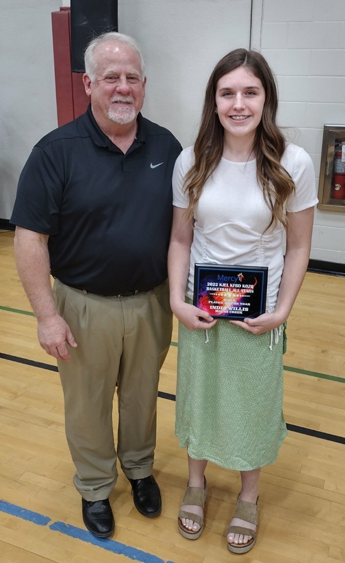After all the players were introduced by their coaches, the thirty Macks Creek family and friends in attendance were pleasantly shocked and thrilled when our own India Willis was introduced as the girls Player-of-the-Year! "For a small school like ours to have a player receive this award was truly something special. Considering that she's a freshman was a tribute to what she accomplished this season", commented Coach Ron Duggan.