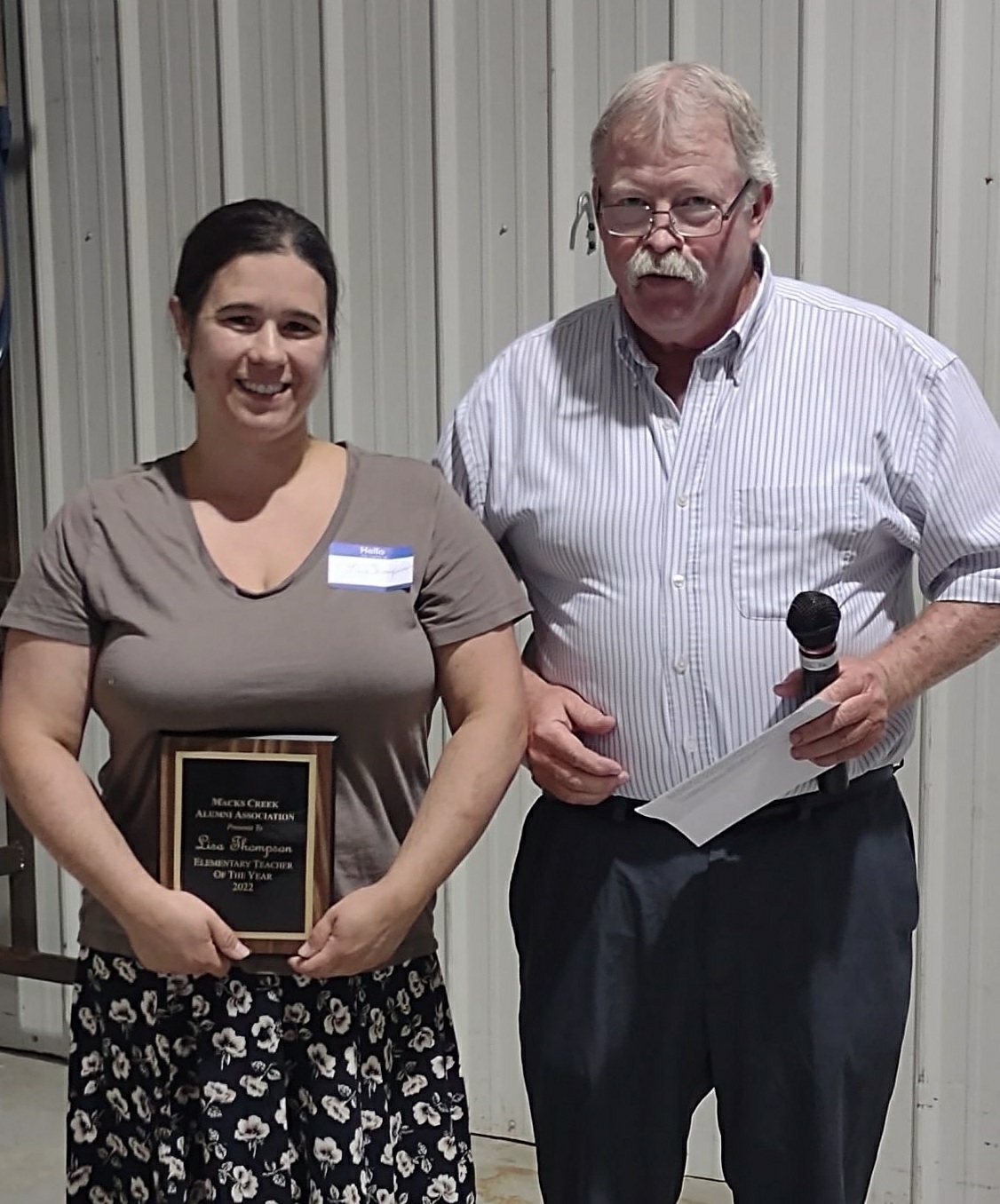 Mr. Craig Parrack presents Mrs. Lisa Thompson with her award.
