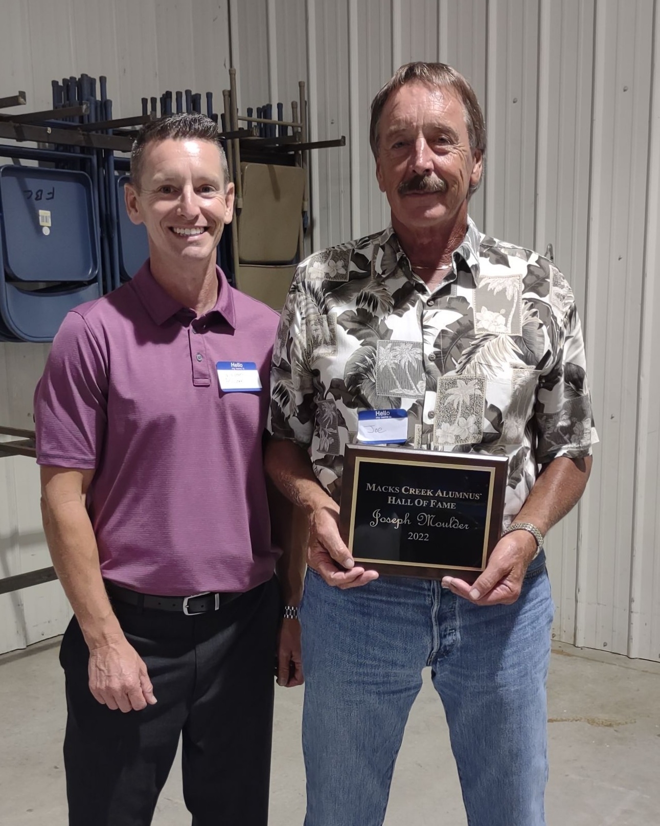 Joseph “Joe” Moulder was inducted into the Macks Creek School Hall of Fame at this year’s 64th annual Alumni Banquet. Joe was born in 1952 and was raised in Macks Creek, Missouri. He completed all 12 years of his education at Macks Creek School. There are two things Joe still remembers very well when he was in high school. One, for being paddled by Superintendent Jackie Howard for not wearing a belt. The other, for being one of the greatest basketball stars at Macks Creek School for keeping the bench warm. Coach Tommy Parrack kept Joe on the bench even if the team was winning by 50 points. Joe graduated from Macks Creek School in 1970. The very next week following graduation, Joe milked his last cow, packed his suitcase and moved to Kirkwood, Missouri.