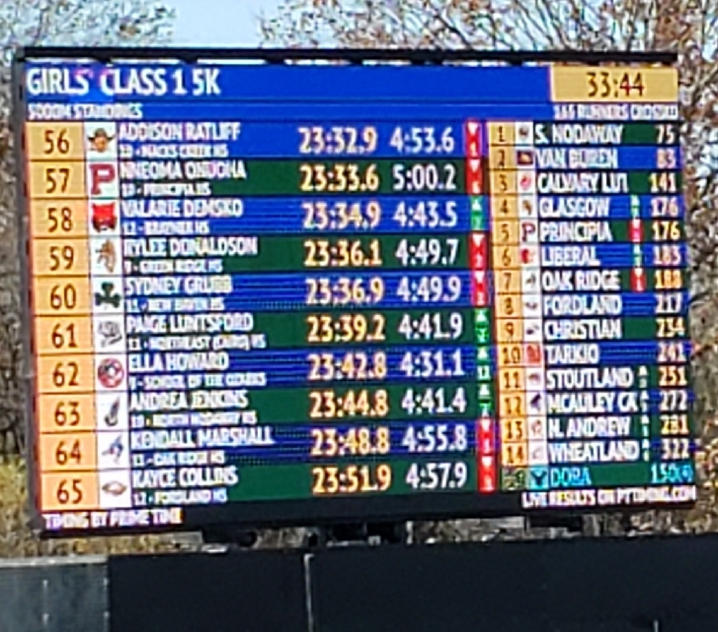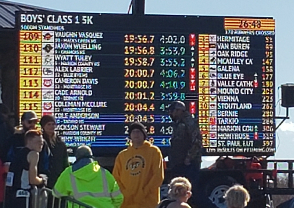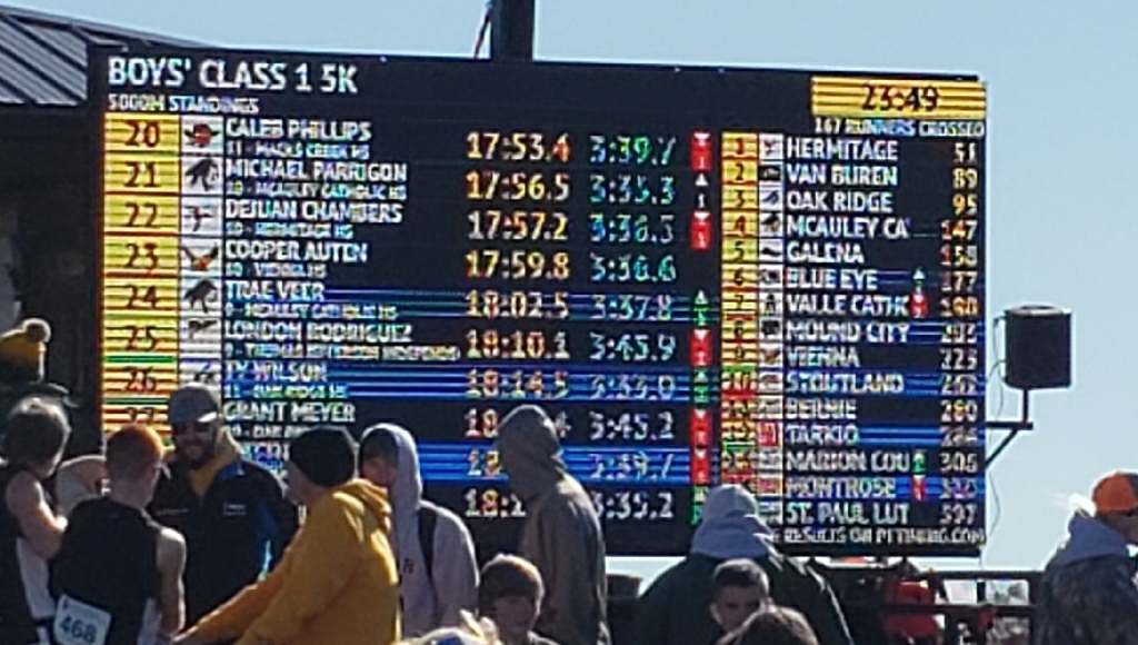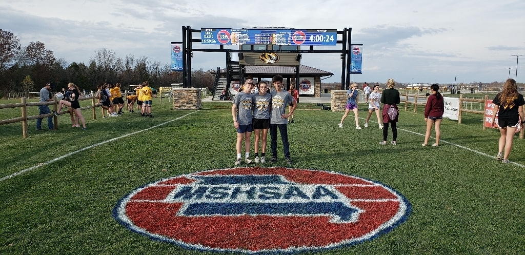 Addison Ratliff, Caleb Phillips and Vaughn Vasquez had a great day competing in the Class 1 MSHSAA Cross Country Championships this Saturday in Columbia. All three athletes raced at State last year and were excited to return to the Championships at MU's Gans Creek course. Addie, a Sophomore who earned All State last year, finished 56th overall. Vaughn, also a sophomore, finished 109th. Caleb finished 20th, earning a place on the medal stand and All State in XC for the second year in a row. All three athletes traveled to Columbia on Friday for a pre-meet workout and fun in Columbia. Congratulations to all three of you! You all ran well and we are proud of all your hard work this season. Below are photos from the event: